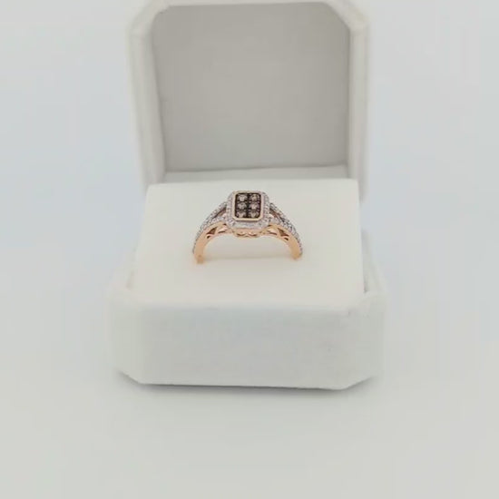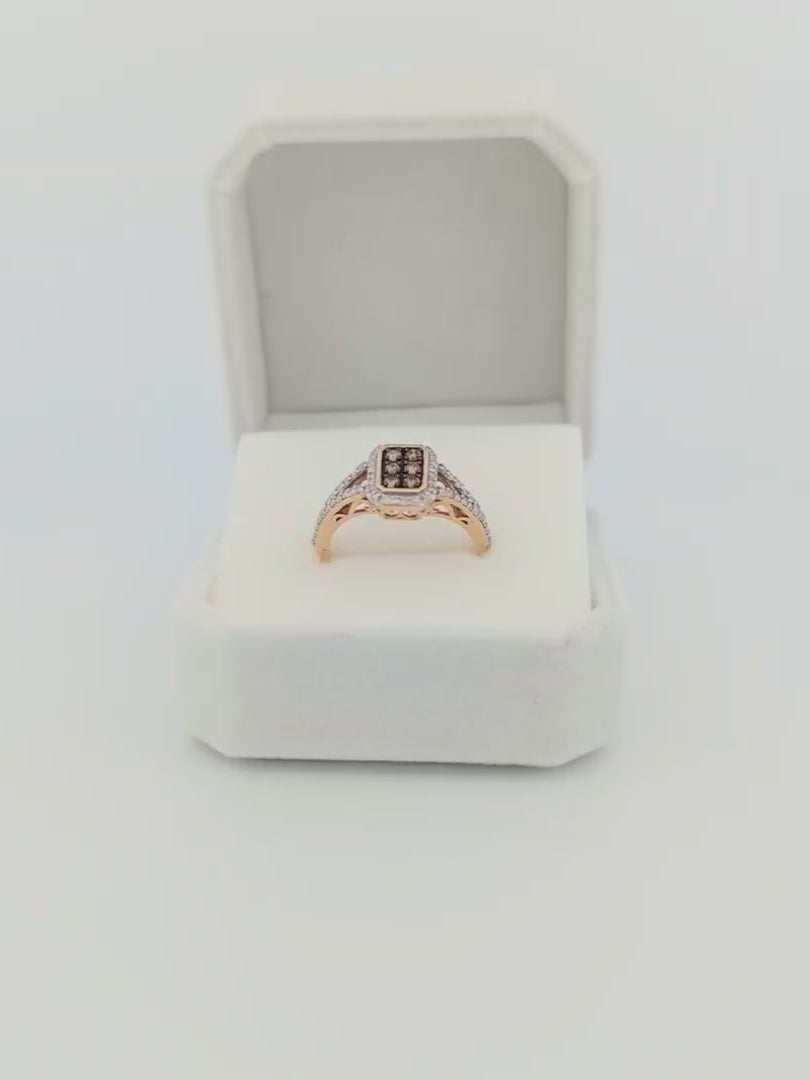 1/2 CTW Natural Diamond Cognac Emerald Style Ring Yellow Gold 10k