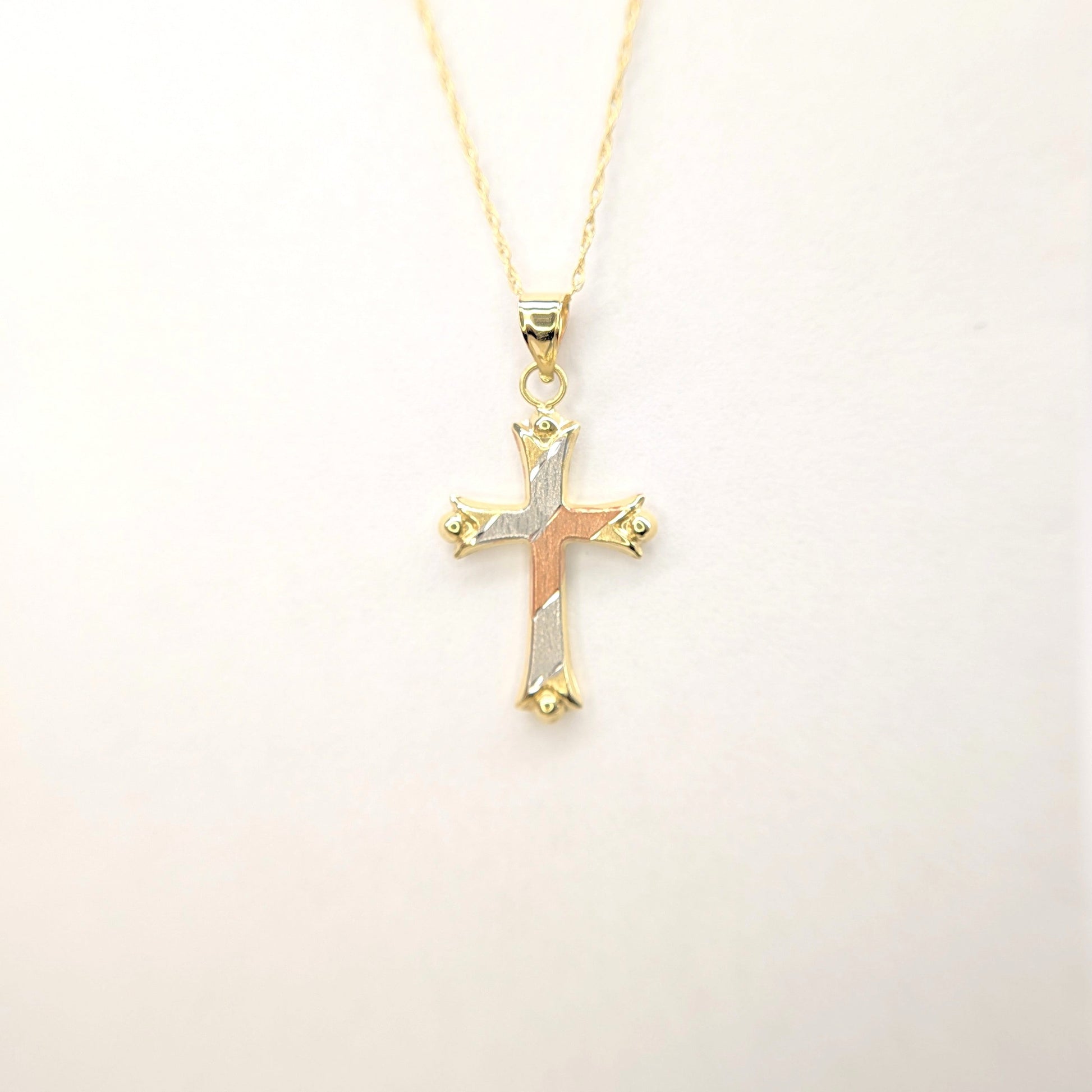 3 Tone Reversible Cross Necklace 14k Yellow Gold Rose Gold White Gold